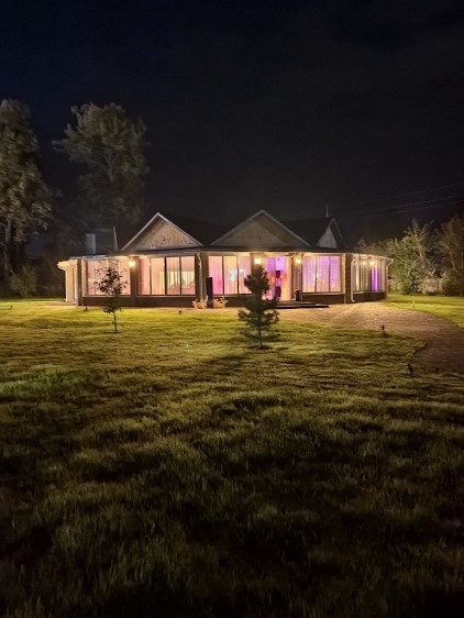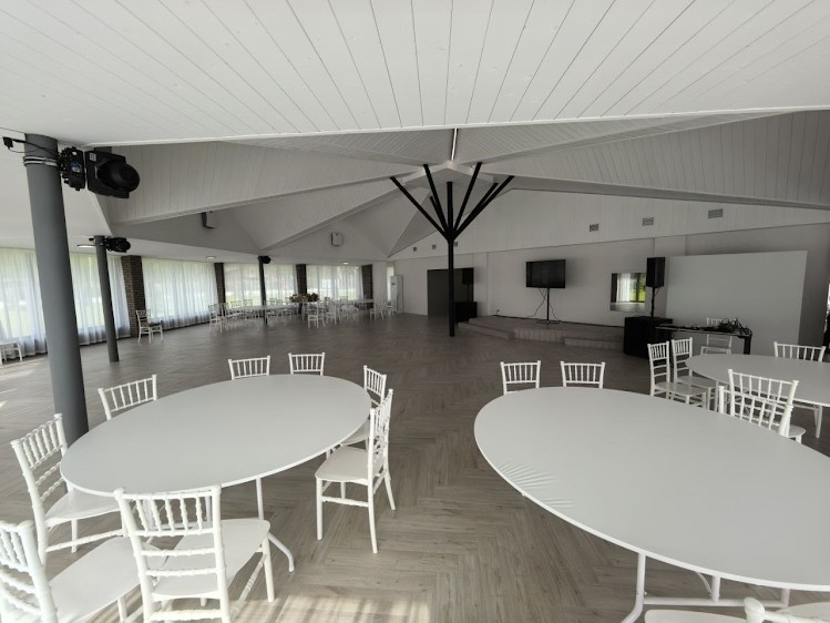 Новый современный светлый банкетный зал 2025 года постройки. Расположен в 25 км от центра Ижевска, в непосредственной близости от Ижевского пруда и пешеходного моста через пруд. Зал оборудован всеми инженерными коммуникациями, что позволяет проводить мероприятия круглогодично. Благоустроенная территория 100 соток и открытая площадка для выездной регистрации, парковка на 100 авто.